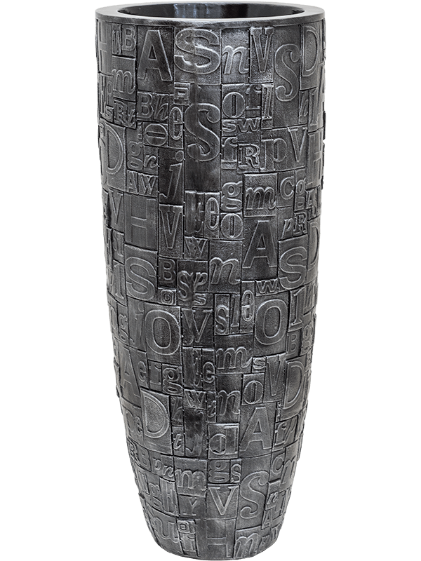 Luxe Lite'i kollektsioonis on suurt tähelepanu pööratud detailidele ning seda on selgelt näha toodete võluvas viimistluses. Potid on valmistatud kas klaaskiust, tugevdatud plastist või kiudkivist. Kõik need materjalid on üsna tugevad ent kaalult kerged.See elegantne silinderjas taimepott on hõbedase värvitooniga, mida kaunistavad erilised kalligraafilised tähed. Poti lai põhi on lame ning tänu sellele toetab kenasti ka suuremaid taimi.