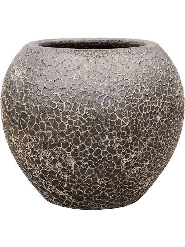 This pot is globe shaped and is for indoor use hence is competely watertight. It is also fitted with anti- scratch material at the bottom. Its brown black color makes it an easy complement for most spaces. It also comes in a firm flat surface that makes it possible for it t obe placed both on the ground and on raised surfaces.